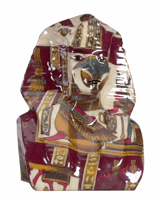 This fine egyptian head in the style of King Tut is 3 3/4" x 2 3/4" x 5 1/2" high Your cost: $6.95 + shipping/handling In addition to this, we carry many other patchwork items including(but not limited to): cheetah giselle tiger rhino lion pig giraffe gorilla elephant | |||||||||||||||||||||||